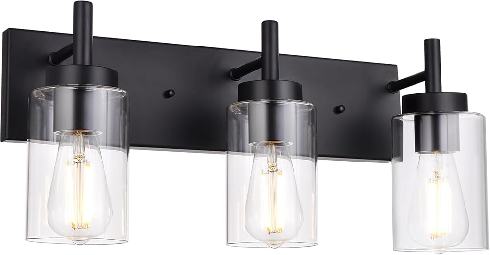 Modern Vanity Lighting,3 Light Matte Black Bathroom Light, Vintage Wall Sconces Lighting with Clear Class Shade Industrial Bath Wall Mounted Lights for Mirror, Living Room, Bedroom Hallway