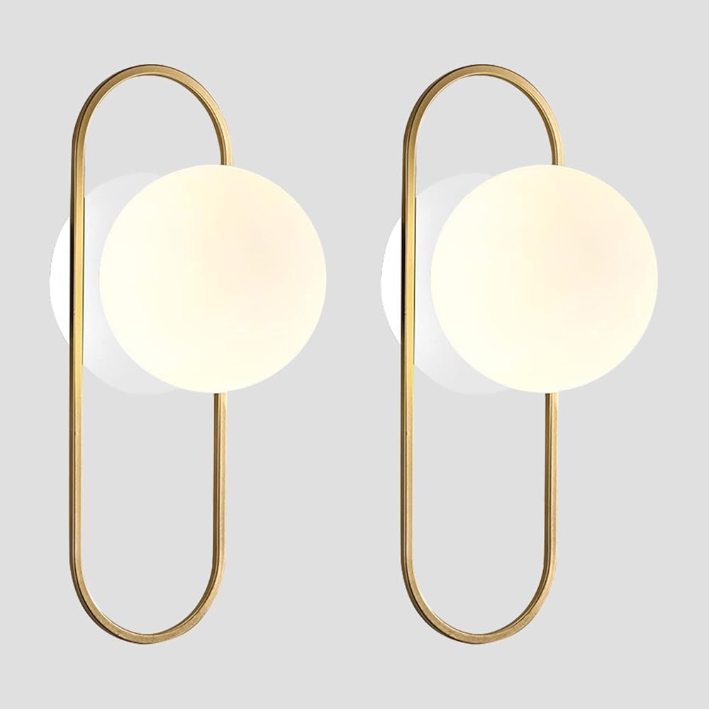 Gold Glass Globe Wall Sconce Set of 2 Mid-Century Modern Vintage Brass Oval Wall Mounted Light Fixtures Rustic Bathroom Vanity Lights Over Mirror