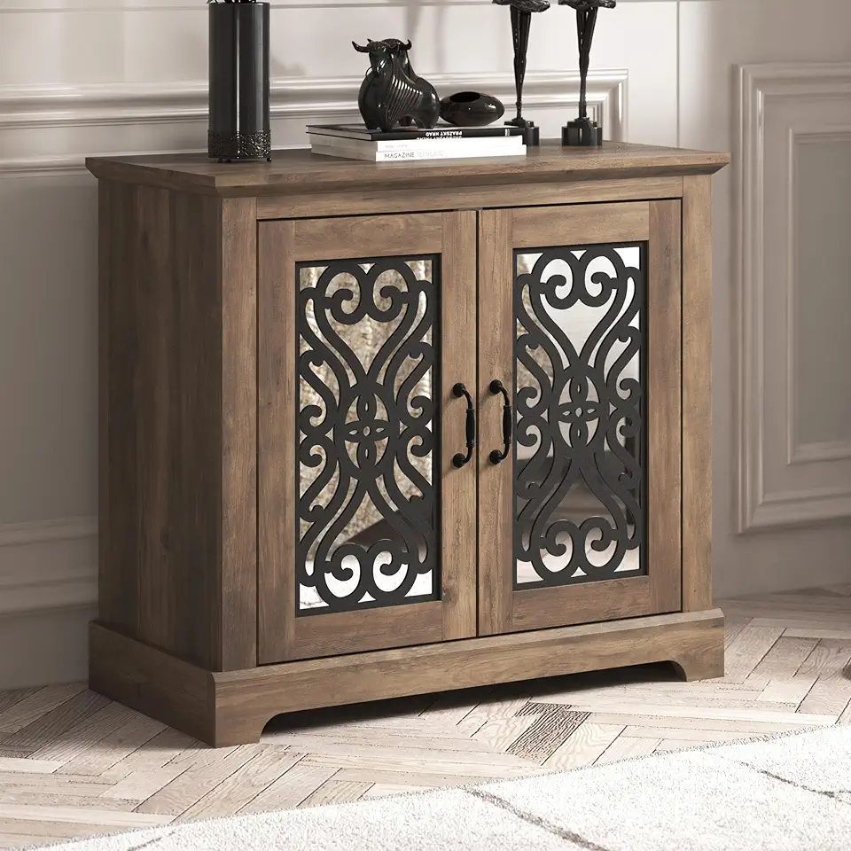 Galano Calidia 2 Door Sideboard, Kitchen Storage Sideboard Buffet Cabinet Console with Acrylic Mirror Doors & Adjustable Shelves, 15.67" D x 32.36" W x 29.29" H, Knotty Oak