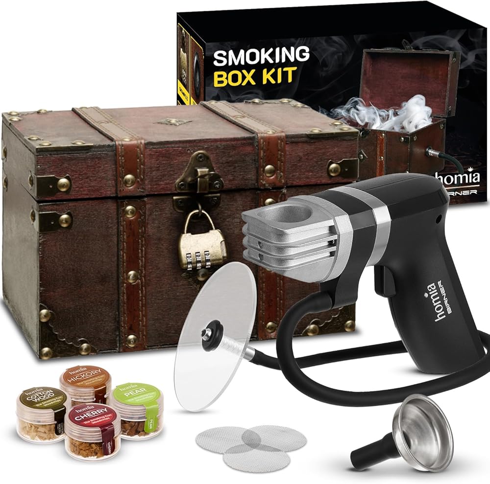 Cocktail Smoker Kit - Smoking Gun Birner PRO - Smoke Box for Drinks, 12 PCS, Smoker Machine with Accessories and Wood Chips - Cold Smoke for Food and Drinks - Gift for Man