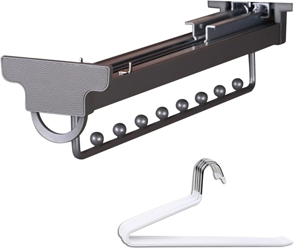Retractable Closet Pull Out Rod,Heavy Duty Extendable Mount Top Pull-Out Metal Closet Valet Rod, Rod Rail Hangers Towel Rack,Hanging Rod for Closet Storage Laundry Room,5 Pcs Pants Rack