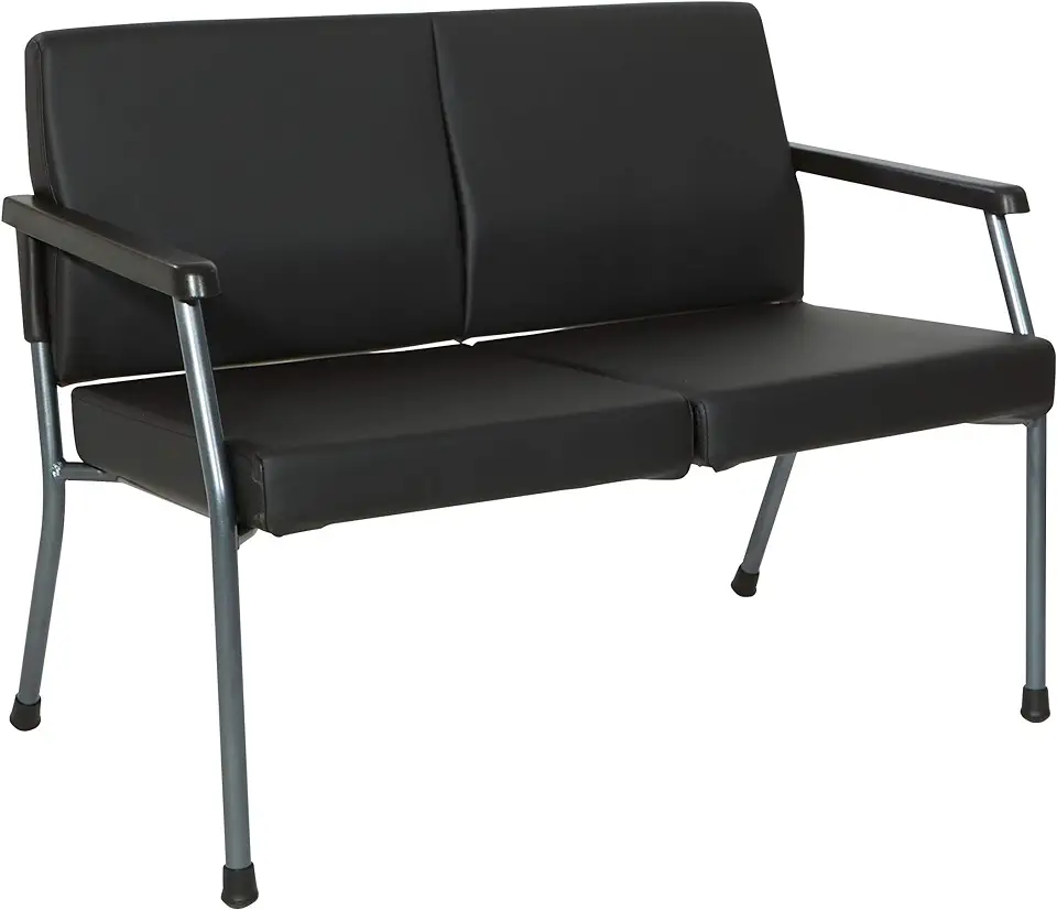 Office Star Bariatric Hip Patient Big and Tall Loveseat Medical Office Chair with Wider Seat and Sturdy Titanium Finish Metal Frame and Back Reinforcement, Dillon Black