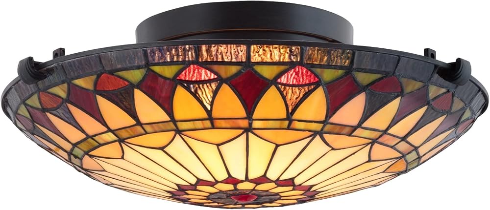 Kira Home Mateo 16" 2-Light Tiffany Glass Flush Mount Ceiling Light, Black Finish