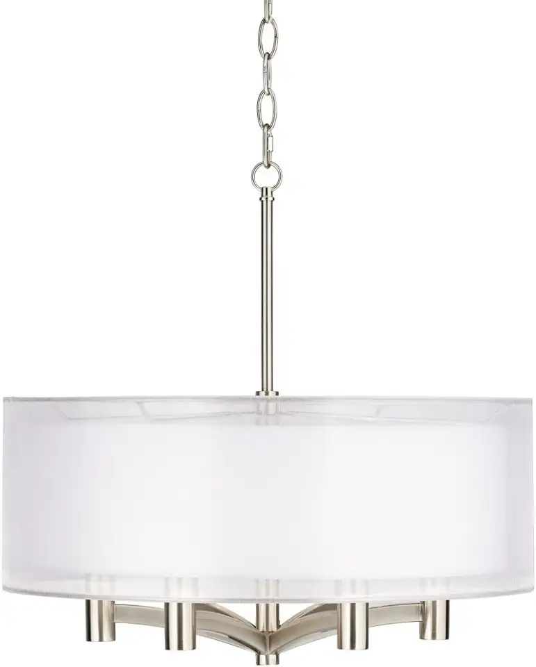 Caliari Brushed Nickel Pendant Chandelier 22" Wide Modern Double Drum Shade 6-Light Fixture for Dining Room House Foyer Entryway Kitchen Bedroom Living Room High Ceilings