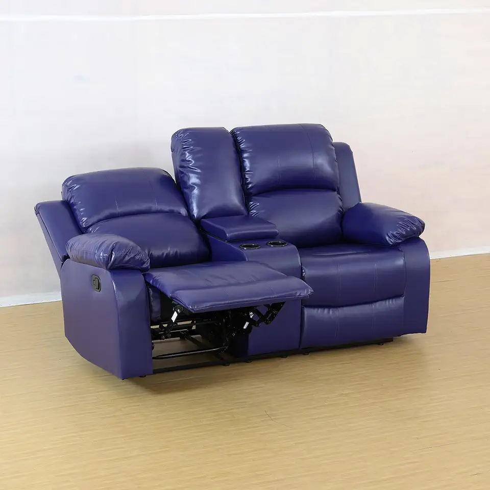 Loveseat Manual Leather Sofa, with Cup Holder, Home Theater Seating, Living Room Furniture for House/Office/Rv, Dark Blue