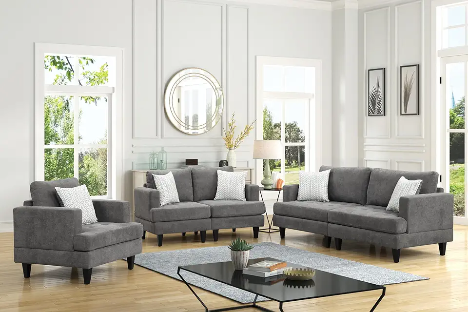 Callaway 80" Gray Chenille Sofa Loveseat Chair Living Room Set with Throw Pillows