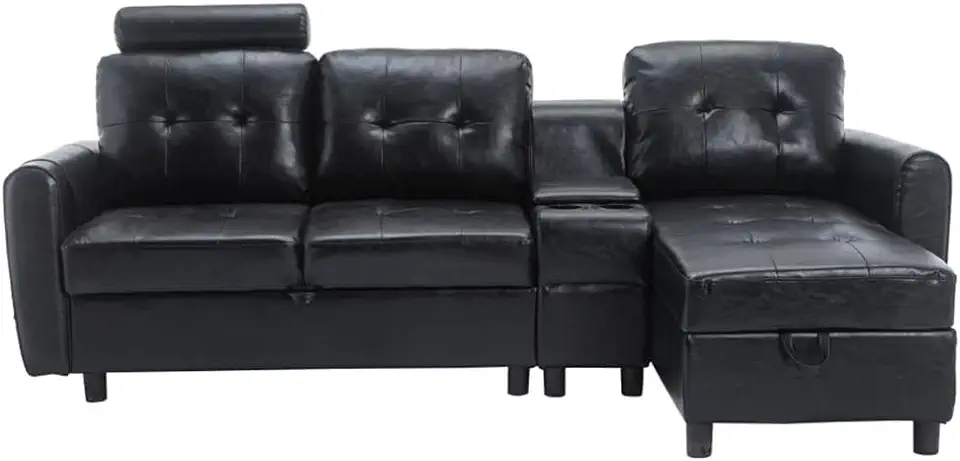 United We Win Storage Sofa/Living Room Sofa Cozy Sectional Sofa,Pu Leather Black