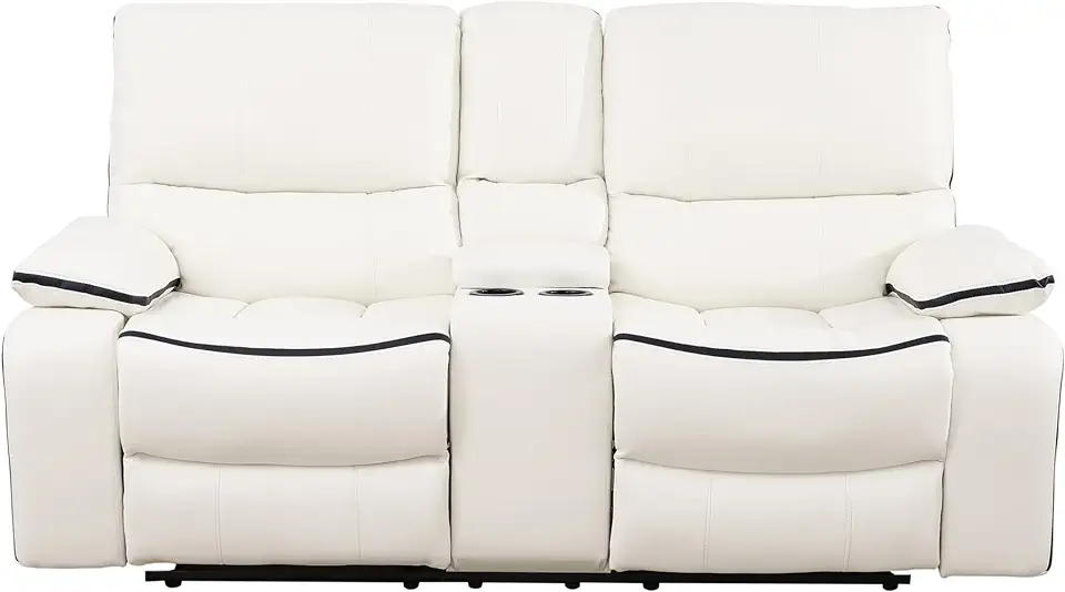 Loveseat Sofa, with Storage Console & Cup Holder, Bonded Leather Upholstery|Manual Reclining, Living Room Furniture for House/Office/Rv, White