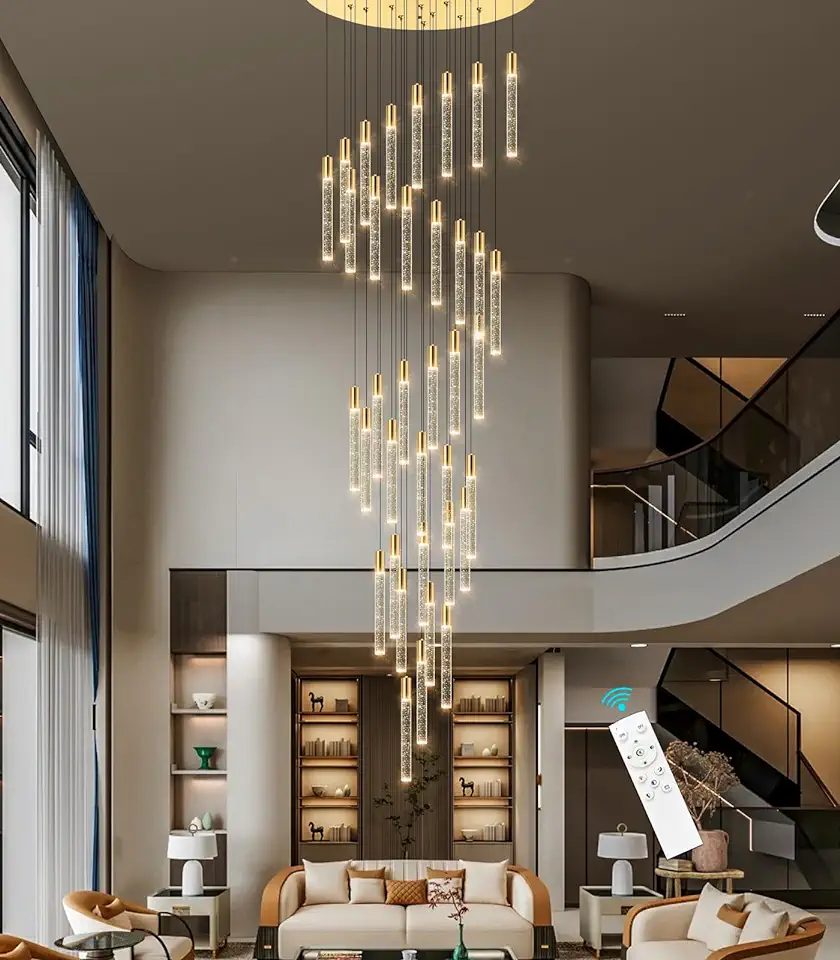 13ft LED Lights Ceiling Light Chandelier Living Room Light Fixtures Gold Chandeliers Hallway Entryway Stair Crystal Modern Chandelier with Dimmable Light Bulbs High Ceiling Foyer Front Door Lighting