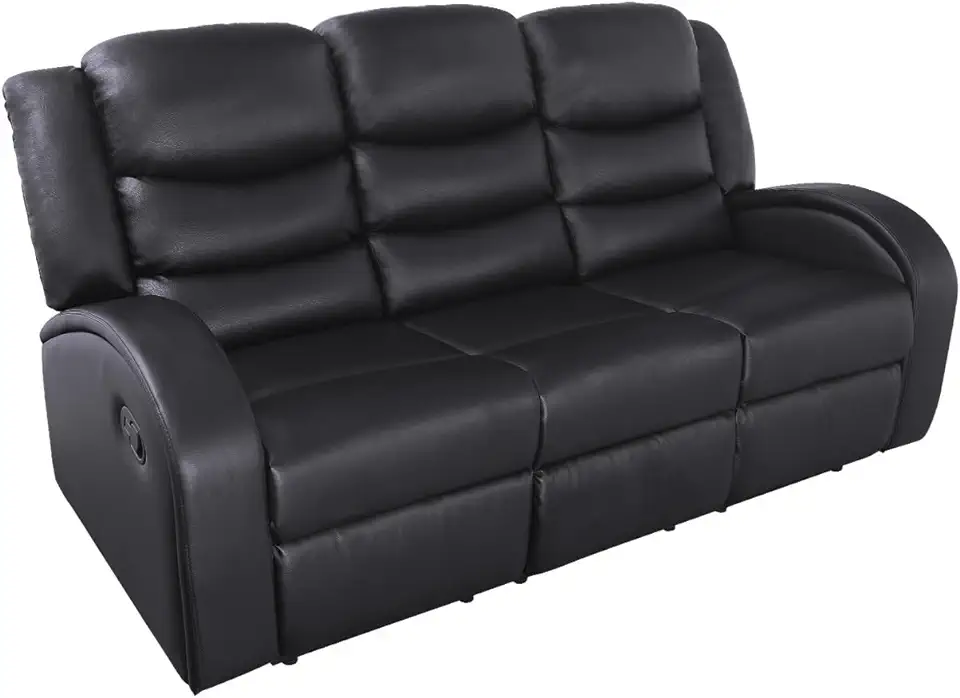 Faux Synthetic Leather 3 Seater, Wall Hugger Sofa Recliners, Living Room Furniture for House/Office/Rv, Black