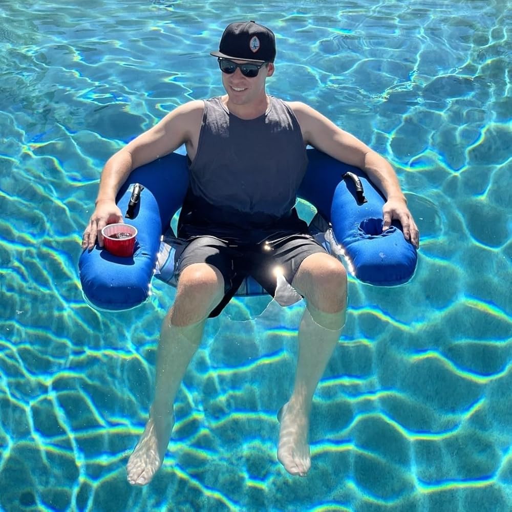 Premium Fabric Covered Inflatable Pool Float, Furniture Quality, Heavy Duty, Floating Pool Chair, Large, Blue