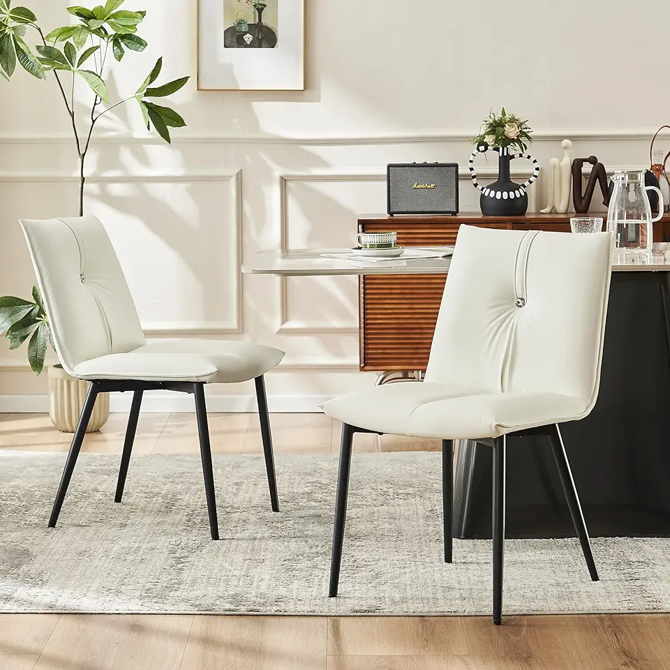 YOUTASTE Modern Dining Chairs Set of 2 Upholstered Leather Kitchen Chairs Soft Padded Side Chairs Dinner Chairs with Metal Legs for Living Room Bedroom, White