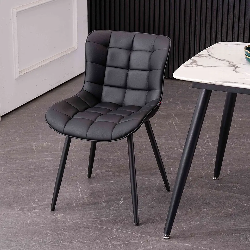 YOUTASTE Black Dining Chairs Set of 2 PU Leather Upholstered Modern Armless Dining Room Chair with Back Metal Legs Kitchen Dinner Accent Guest Chairs for Vanity Reception Waiting Room