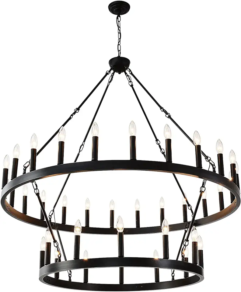 Black Wagon Wheel Chandelier 2 Tier 36-Lights 48 Inch Extra Large Farmhouse Light Fixture, Round Rustic Lighting for Dining Room Kitchen Island Foyer Entryway