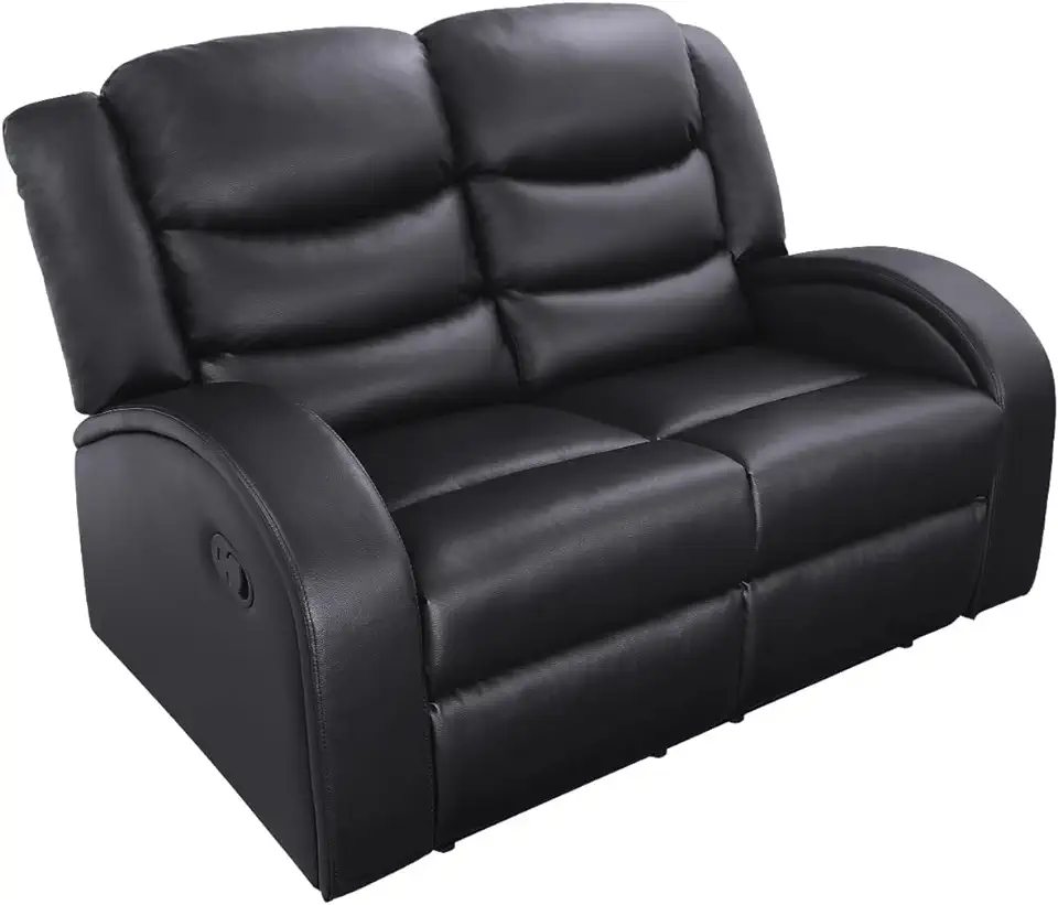 Faux Synthetic Loveseat Recliner Sofa, Leather-Home Theater Seating, Living Room Furniture for House/Office/Rv, Black