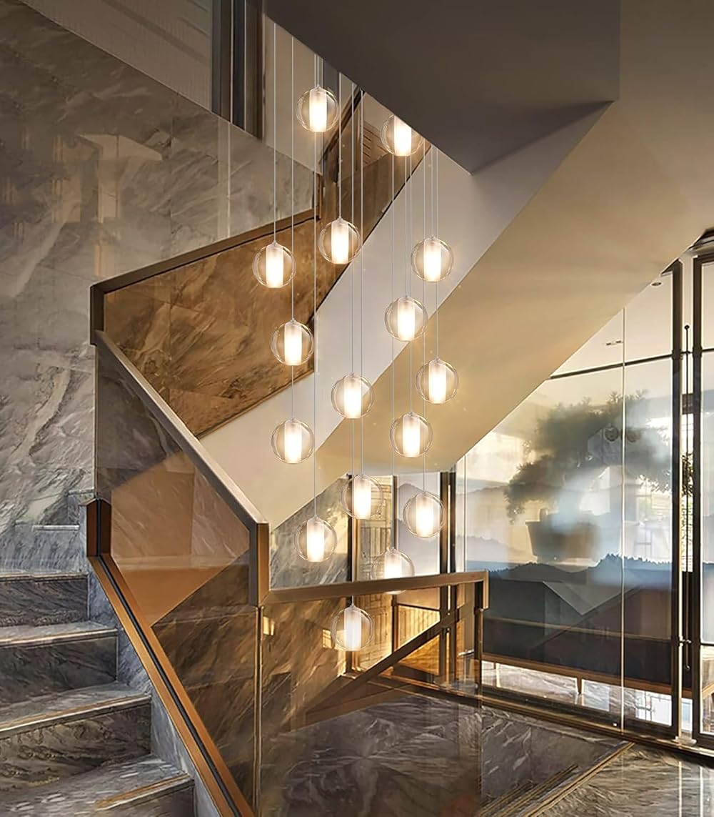 Modern LED Chandeliers for Entryway 11.5 Foot High Ceiling Chandelier Bubble Crystal Pendants Lighting Fixture for Living Room Staircase Foyer