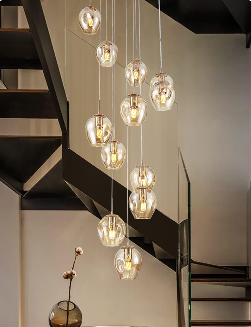 Long Chandeliers for High Ceilings,Modern Crystal Balls Pendant Light,Globe Raindrop Drop Lamp,Flush Mount Hanging Lighting Fixtures for Spiral Staircase,Foyer,Entryway,Living,10 Lights