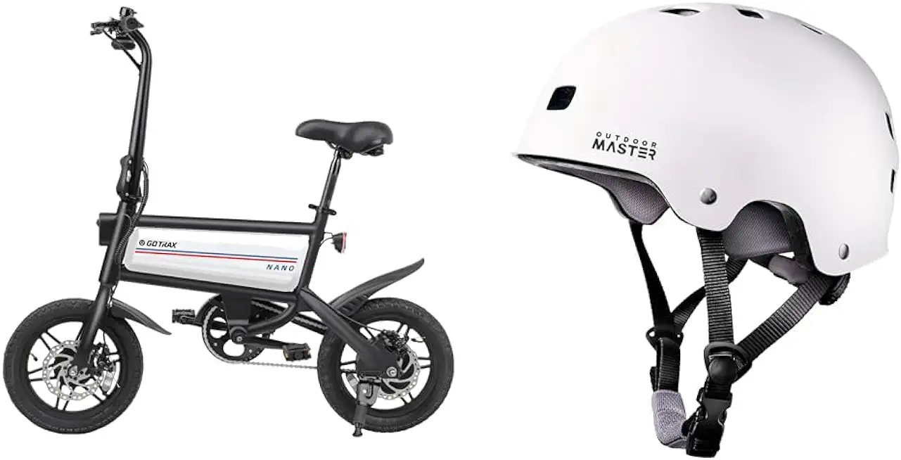Gotrax Nano 14" Folding Electric Bike with 350W Motor & OutdoorMaster Skateboard Cycling Helmet with Removable Liners