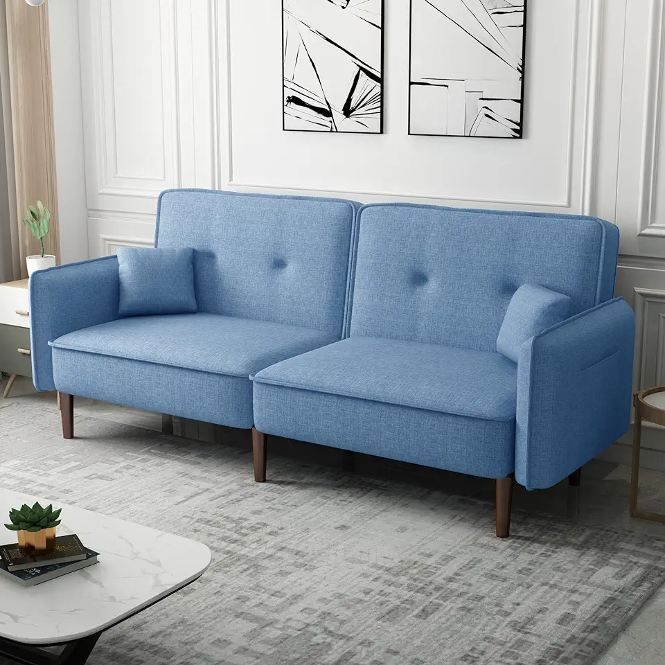Futon Sofa Bed,Modern Convertible Sleeper Couch with 3 Angles Adjustable Back and Solid Wood Leg for Living Room/Bedroom/Apartment/Office,Blue