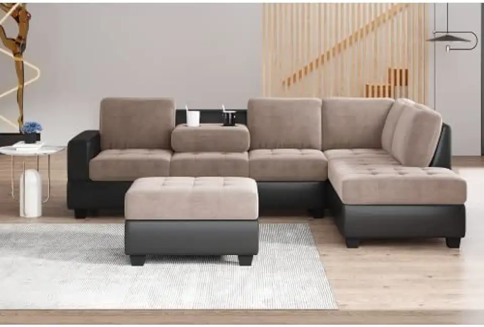 Living Room Sectional Furniture Small L Shaped Couch Small Spaces Convertible Sectional 3PCS Sectional Sofa, Microfiber L-Shape Sectional Sofa Couch And Storage Ottoman Living Room Set, Reversib
