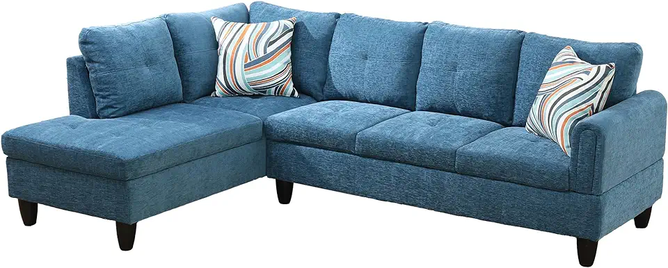 2Pcs Faux Leather Modular Sectional Sofa, 97" W, with Chaise, Blue