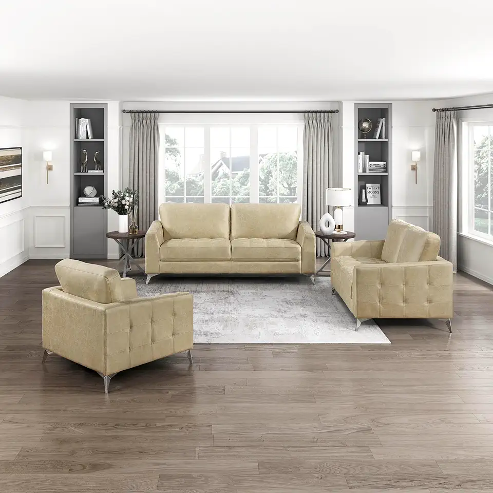 Lexicon Modern Living Room Furniture Set, Couches for Living Room, 3-Piece Couch Set Including Sofa, Loveseat, Lounge Chair with Microfiber Fabric Upholstered and Metal Legs, Sand