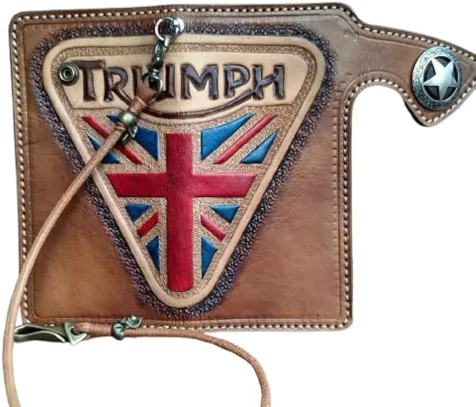 Triumph, Biker, Motorcycle, Motorbike, Men's 3D Genuine Leather Wallet, Long wallet, Checkbook Cover, Biker Wallet, Handmade wallet, Carved wallet, Airbrush Art, Custom wallet, Personalized wallet