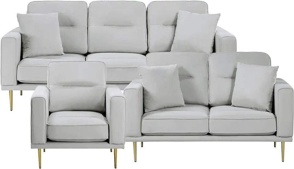 Lexicon Modern Living Room Furniture Set, Couches for Living Room, 3-Piece Couch Set Including Sofa, Loveseat, Lounge Chair with Metal Seat Base and Metal Legs, Grey