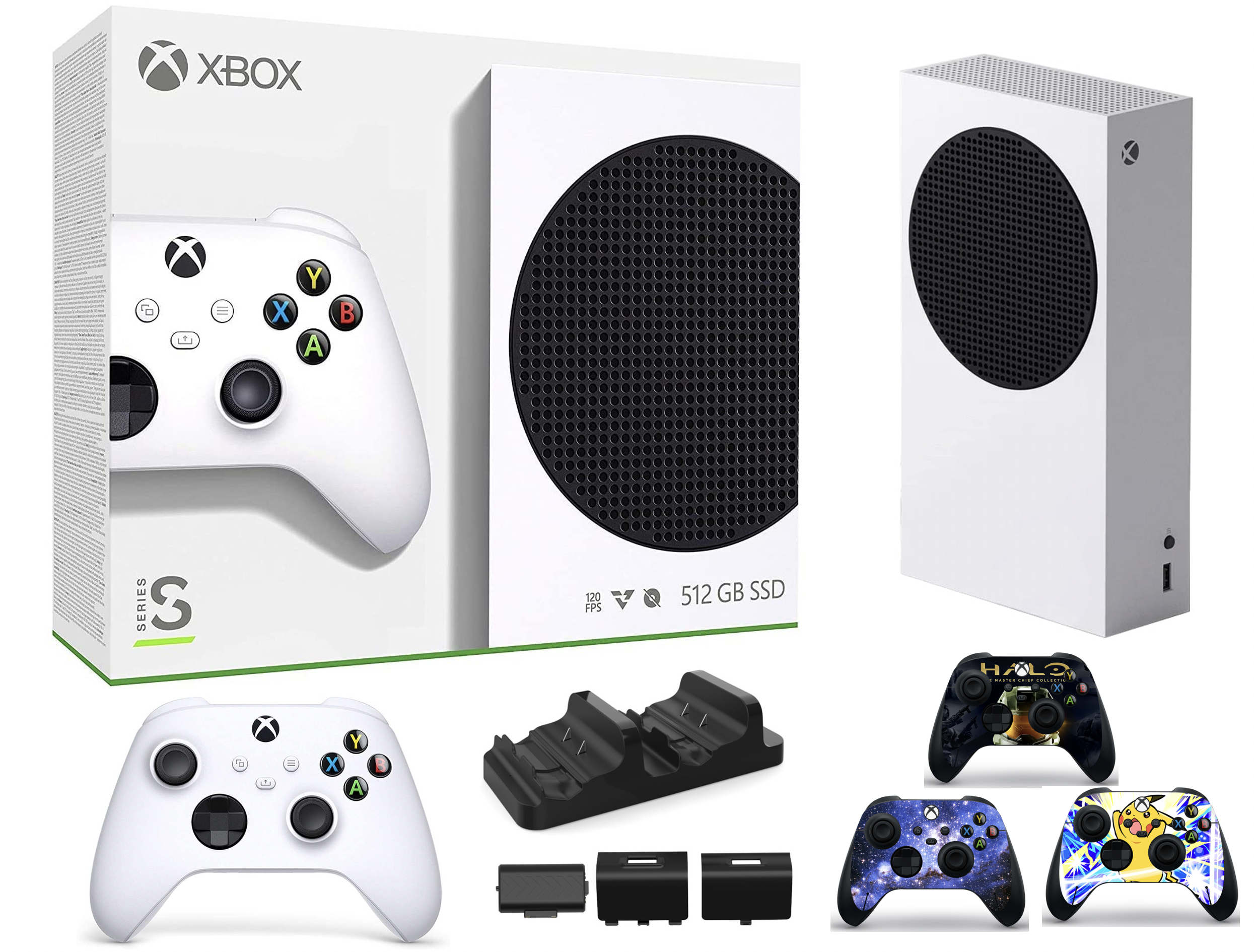 2023 Newest Microsoft Xbox Series S 512GB SSD All-Digital Console, 10GB GDDR6 RAM, 1440p Gaming, 4K Streaming, 3D Spatial Sound, WiFi + Controller Fast Charging Dock + 3pcs-Marxsol Controller Skins