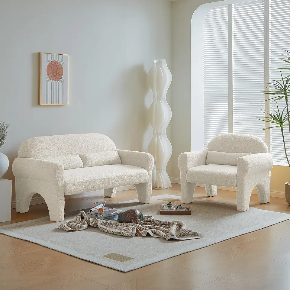 GOWE [Video provided] 2 Piece Set Sofa Couch,Modern Boucle loveseat & Accent Chair for Living Room