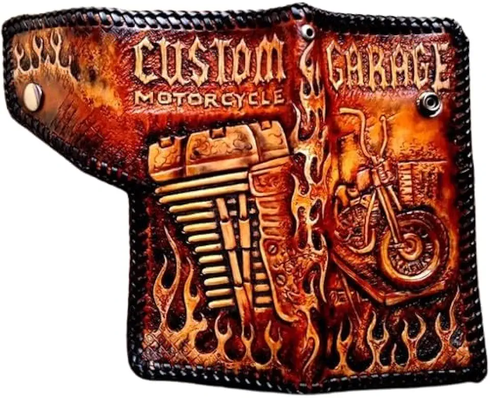Men's 3D Genuine Leather Wallet, Long Travel wallet, Custom Biker wallet, Personalized Clutch wallet, V-twin Engine, Davidson, Gearhead Design, Motorcycle Garage, Harley, Bike, Flame, Fier, Clube