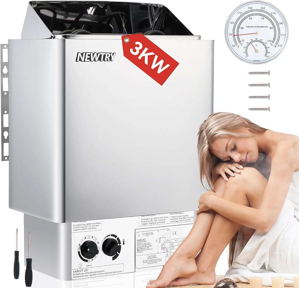 NEWTRY 3KW Sauna Heater, 220V Electirc Sauna Heaters Dry Steam Bath Sauna Stove with Built-in Control for Max. 130 Cu.ft Home Spa Hotel Sauna Room