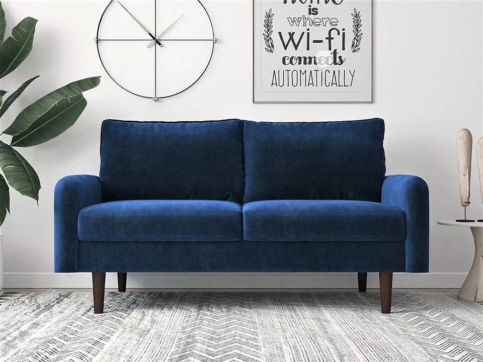 Americus Ultra Modern Velvet Upholstered Living Room Loveseat, 57.8", Space Blue