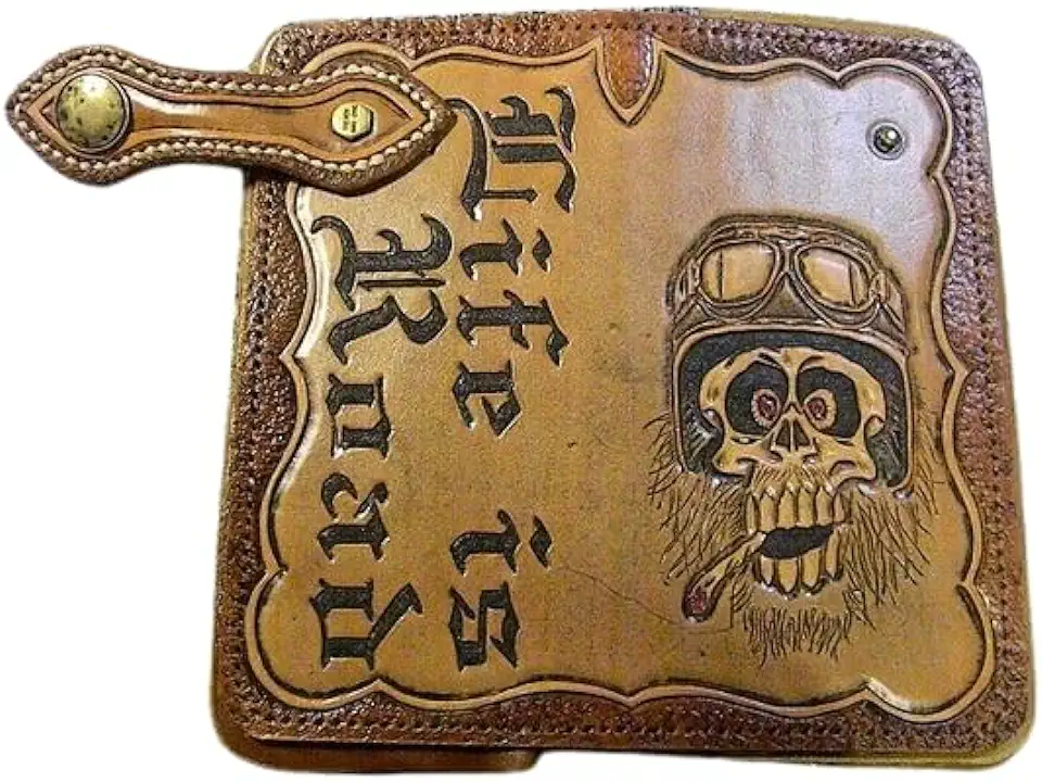 Men's 3D Genuine Leather Wallet, Long Travel wallet, Custom Biker wallet, Personalized Clutch wallet, V-twin Engine, Davidson, Gearhead Design, Motorcycle Garage, Harley, Bike, Life is Road, Skull