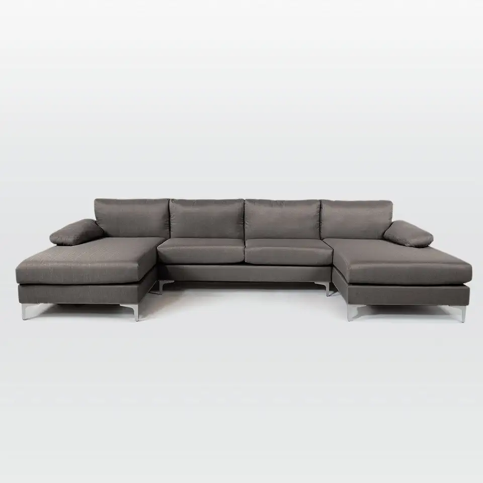Casa Andrea Milano Modern Large Linen Fabric U-Shape Sectional Sofa, Double Extra Wide Chaise Lounge Couch