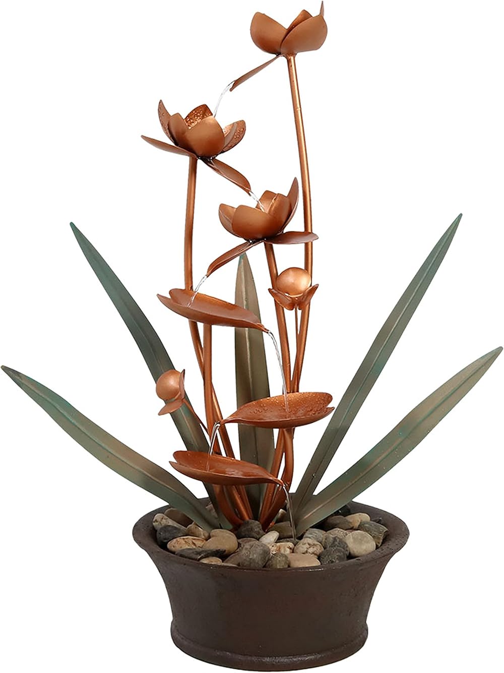 Sunnydaze 28-Inch Flower Blossoms Outdoor Water Fountain - Copper Waterfall Fountain for The Patio, Yard, or Garden