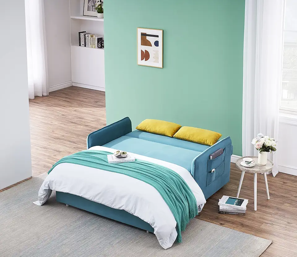 FANYE Blue Velvet 2 Pillows Side Pockets Twin