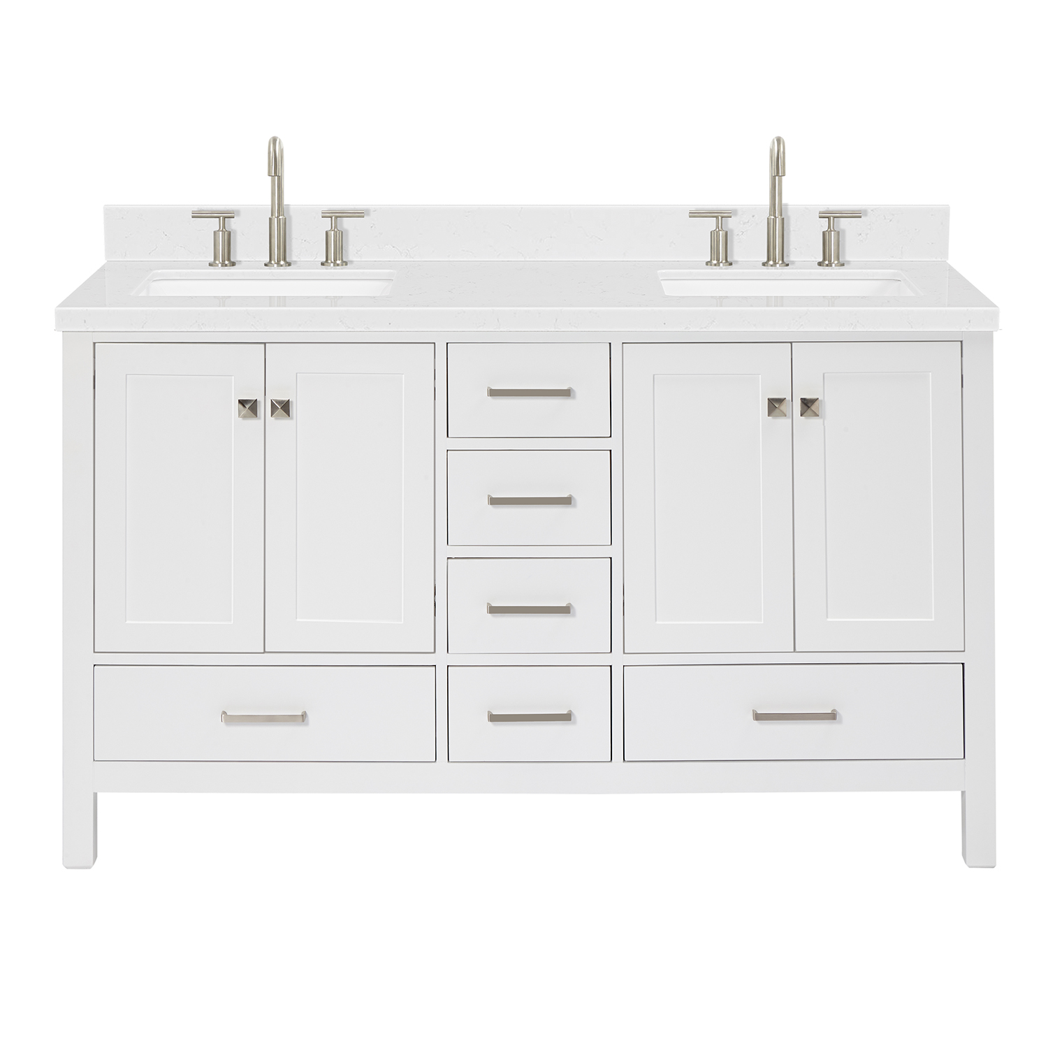 Ariel Cambridge 60 Inch Double Rectangle Sink Bathroom Vanity With Carrara White Quartz Countertop 1.5 Edge In White