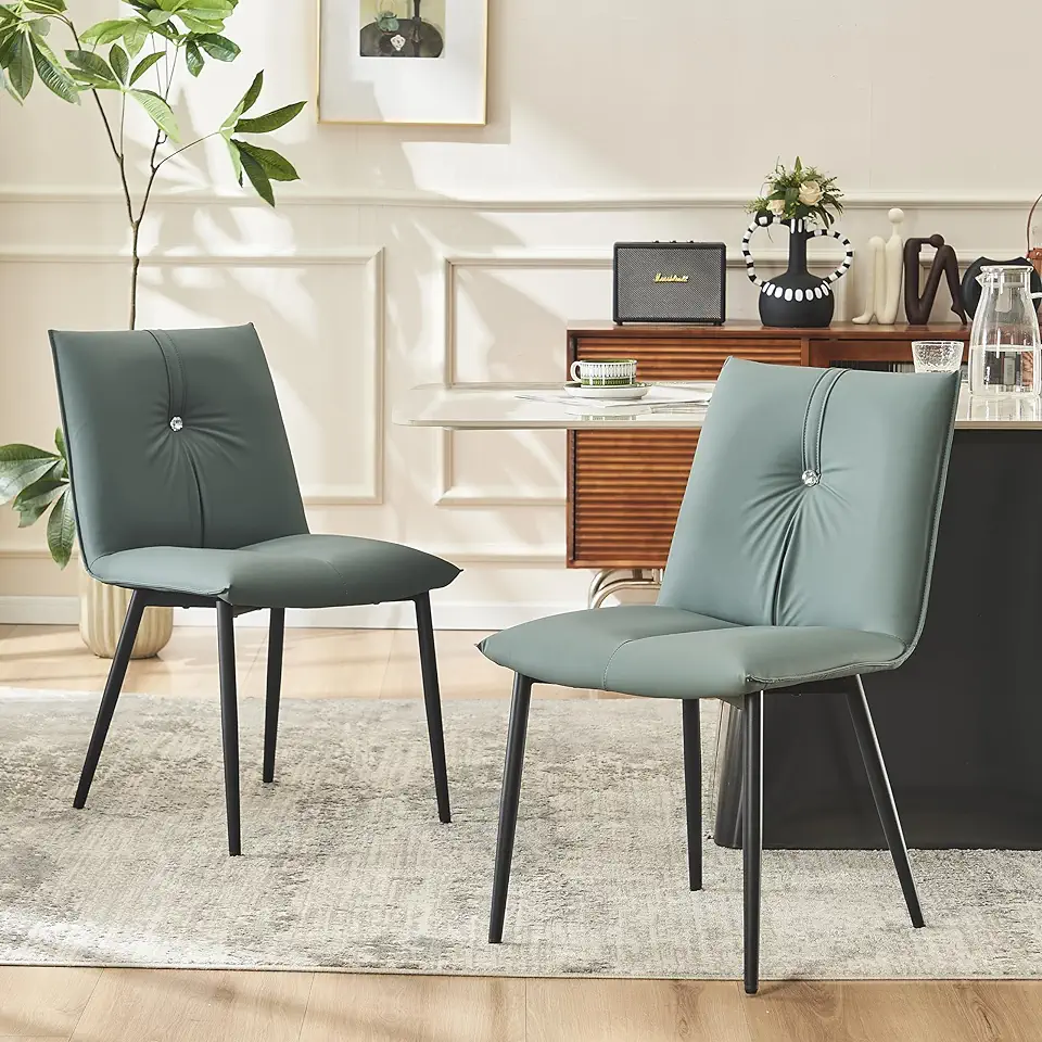 YOUTASTE Dining Chairs Set of 2 Mid Century Modern Upholstered Leather Kitchen Chairs Soft Padded Side Chairs Dinner Chairs with Metal Legs for Living Room Bedroom, Blue Gray