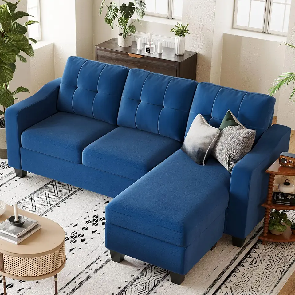 Velvet Sectional Couch with Reversible Chaise, L Shaped Sofa for Living Room, Blue
