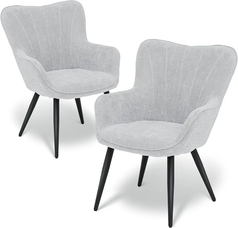 Athena Collection Accent Chair Set of 2, Modern Comfy Armchair Upholstered Vanity Chair with High Curved Back and Metal Leg, Shell Shaped Single Sofa Reading Chair for Bedroom Living Room, Lava Gray