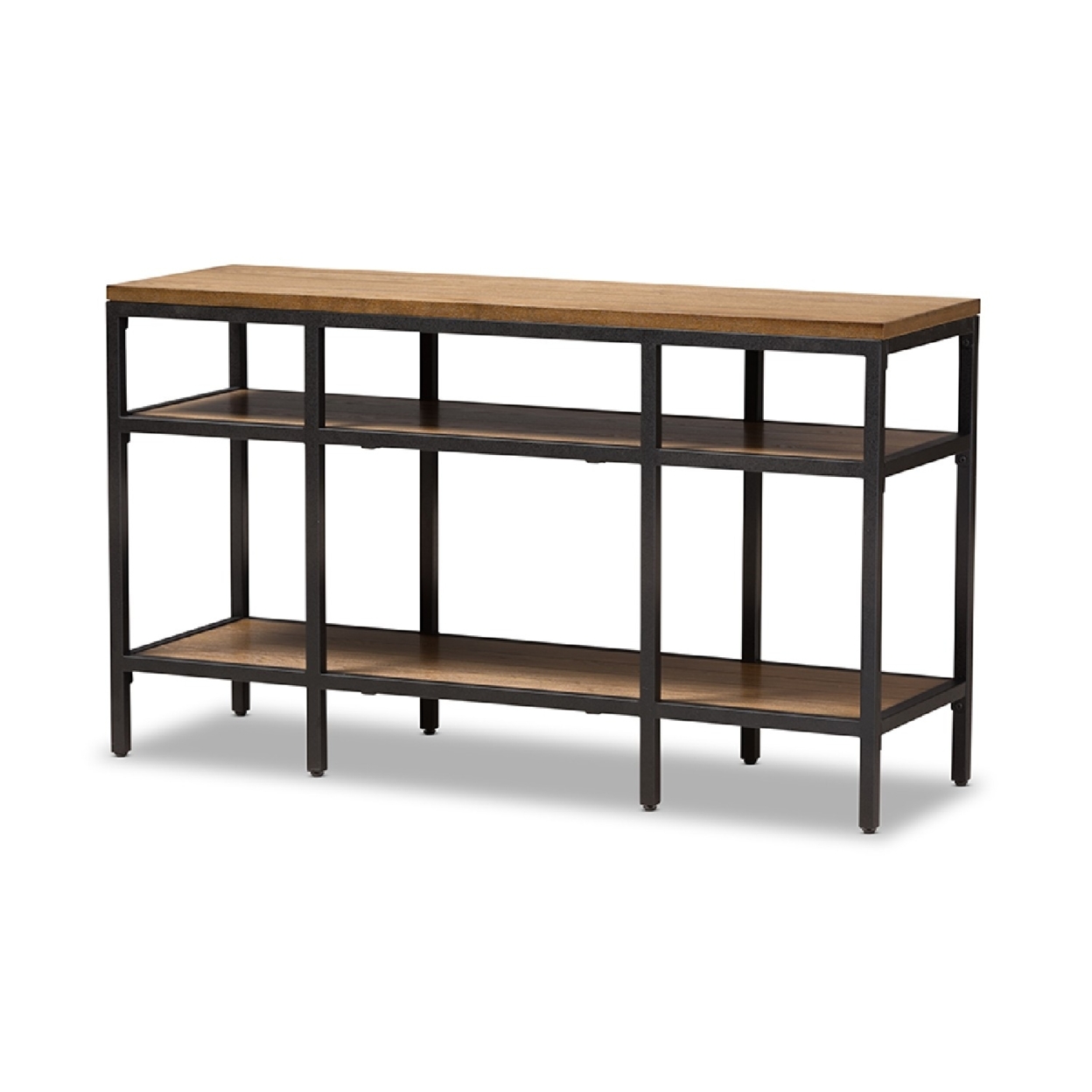 Baxton Studio Caribou Rustic Industrial Style Oak Brown Finished Wood and Black Finished Metal Console Table