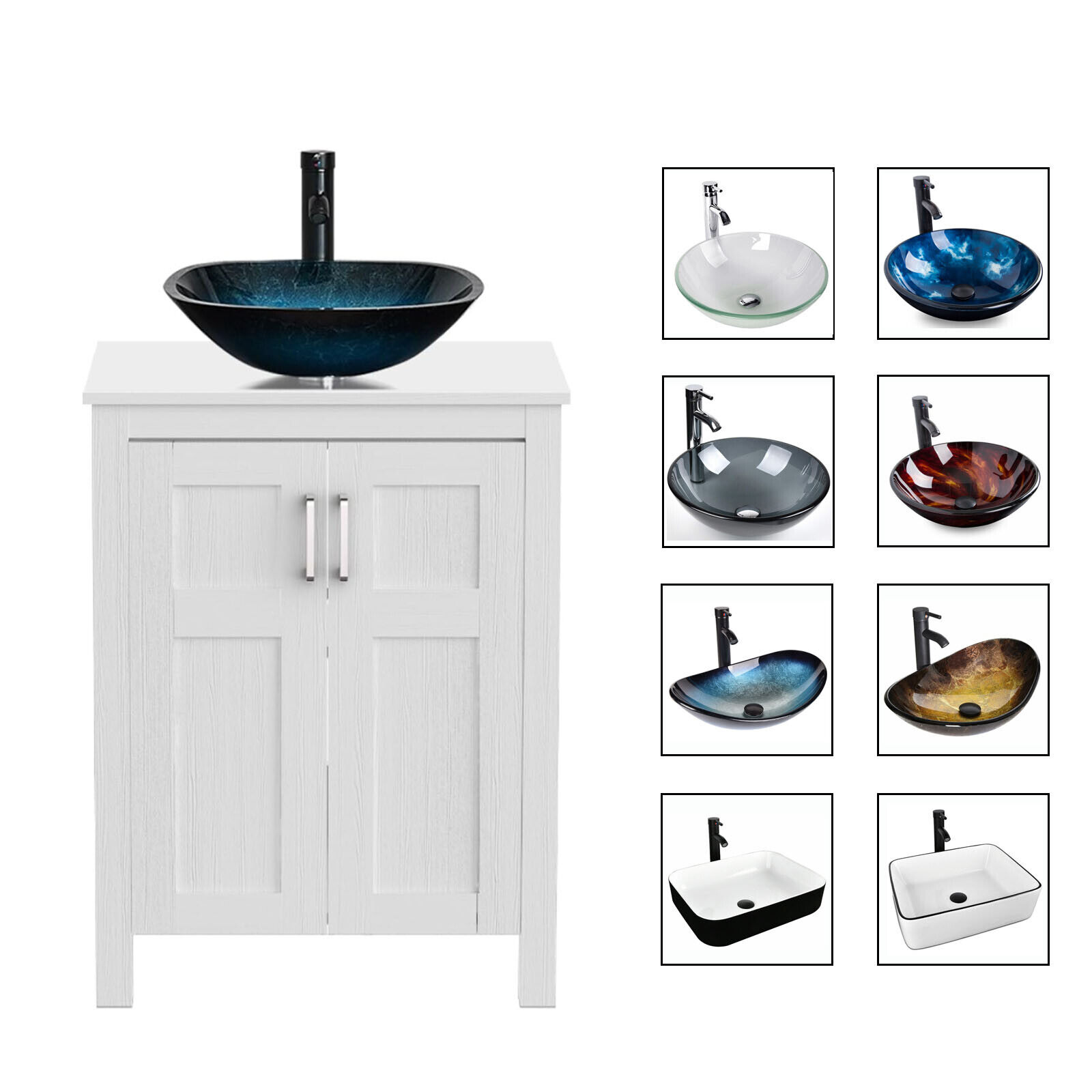 FULLWATT 24" Bathroom Wood Vanity Cabinet Storage Counter-top Vessel Sink Pop Up Combo