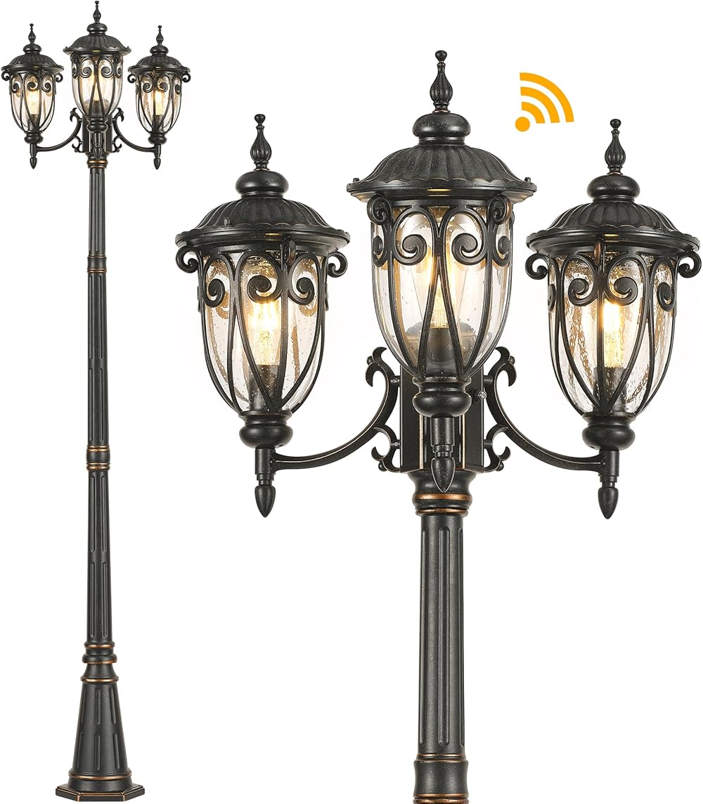 VIANIS Outdoor Post Lights,Lamp Posts Outdoor Lighting Lantern, 3-Head Oil Rubbed Bronze Waterproof Street Light Sconce, Vintage Light Posts for Outside with Seed Glass
