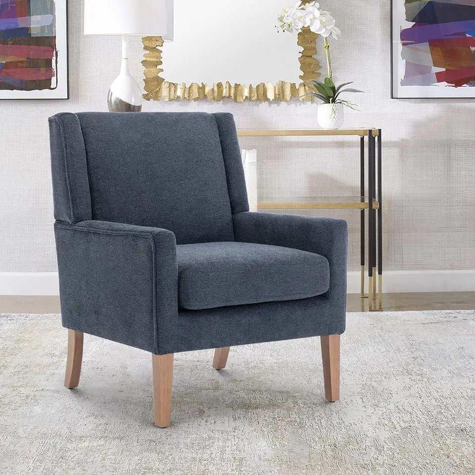 COLAMY Modern Wingback Living Room Chair, Upholstered Fabric Accent Armchair, Single Sofa Chair with Lounge Seat and Wood Legs for Bedroom/Office/Reading Spaces, Blue