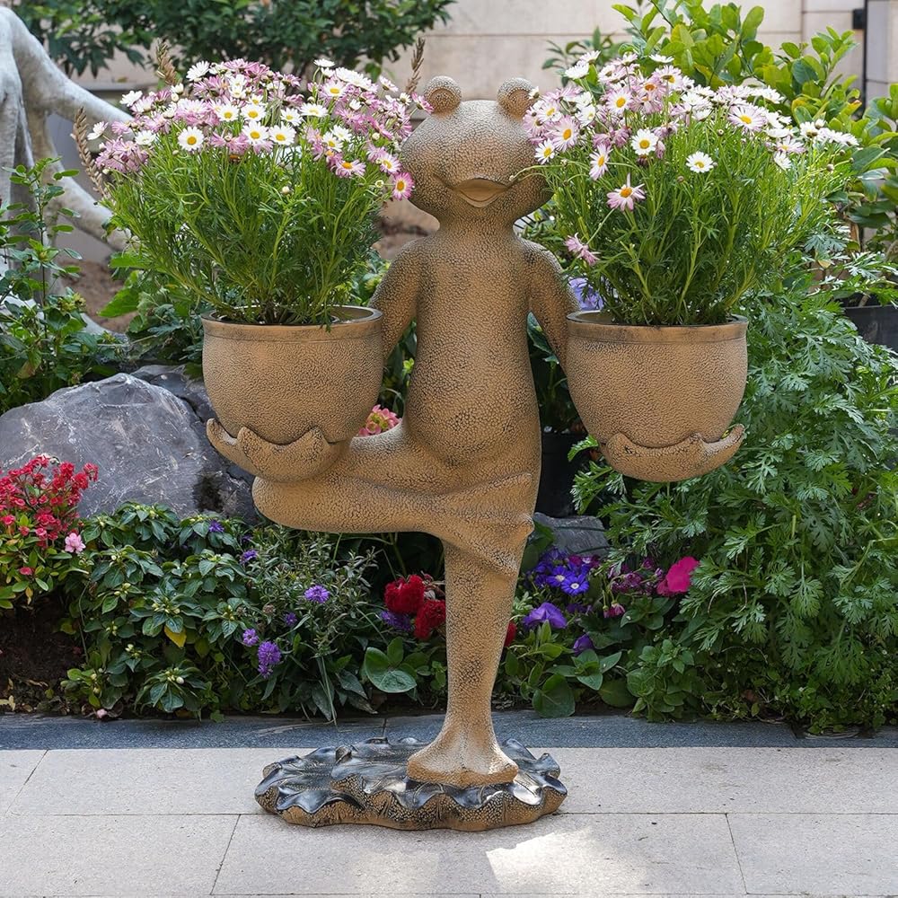 Large Yoga Frog Garden Statue with Planter - Heavy Duty Flowerpot Outdoor Statue Planter Frog Yoga Zen Decor Yoga Statues and Sculptures Meditation Decor Unique Garden Gift 36 Inch Brown