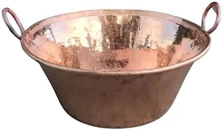 CELLY PARTY 18" Authentic and Cazo De Cobre Original Para Carnitas Large Heavy Duty Gauge Copper Pot Hand Hammered Made in Mexico 100% Copper Wok Jam Pan