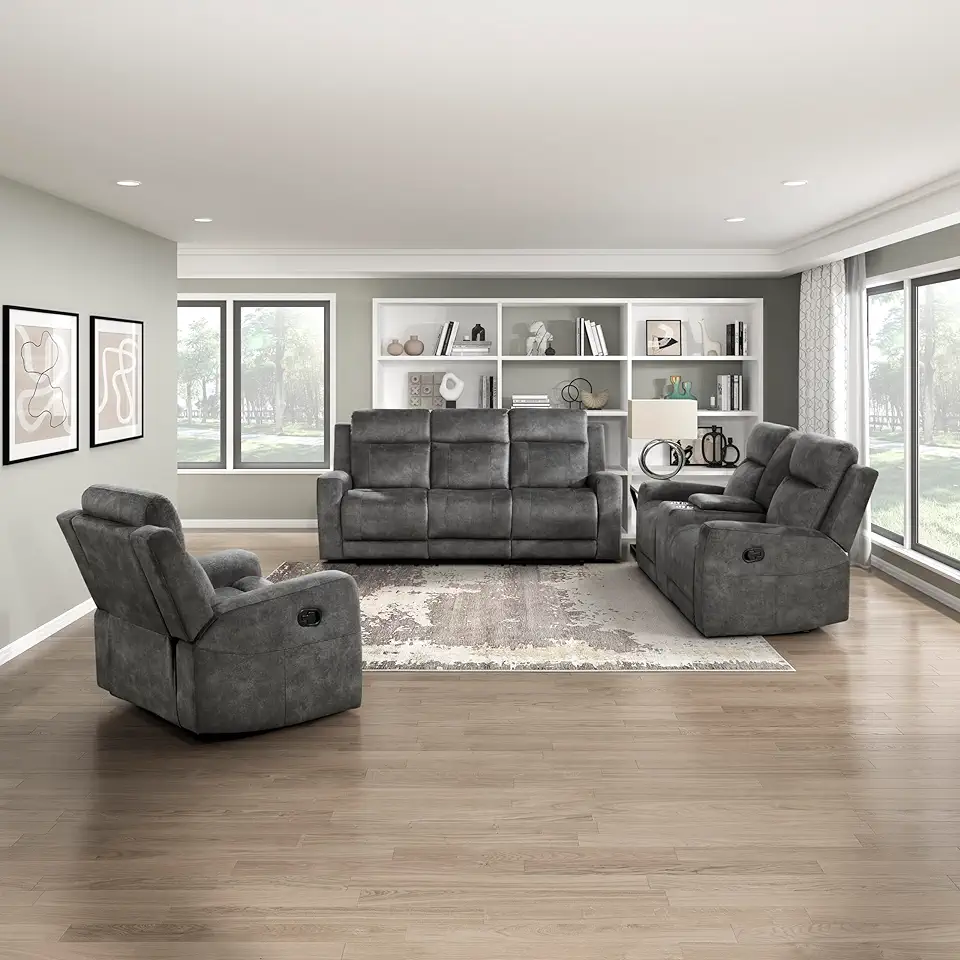 Lexicon Living Room Furniture Sets Including Microfiber Recliner Sofa, Loveseat and Recliner Chair, Manual Wall Hugger Recliner Home Theater Seating, Double Recliner RV Couch, Dark Grey