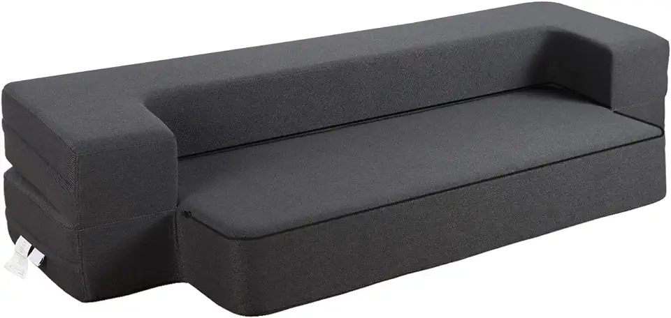 10 Inch Modern Folding Sofa Bed Couch Memory Foam Couch Full Futon Sofa Sleeper Chair for Living Room Guest Mattress, Dark Grey