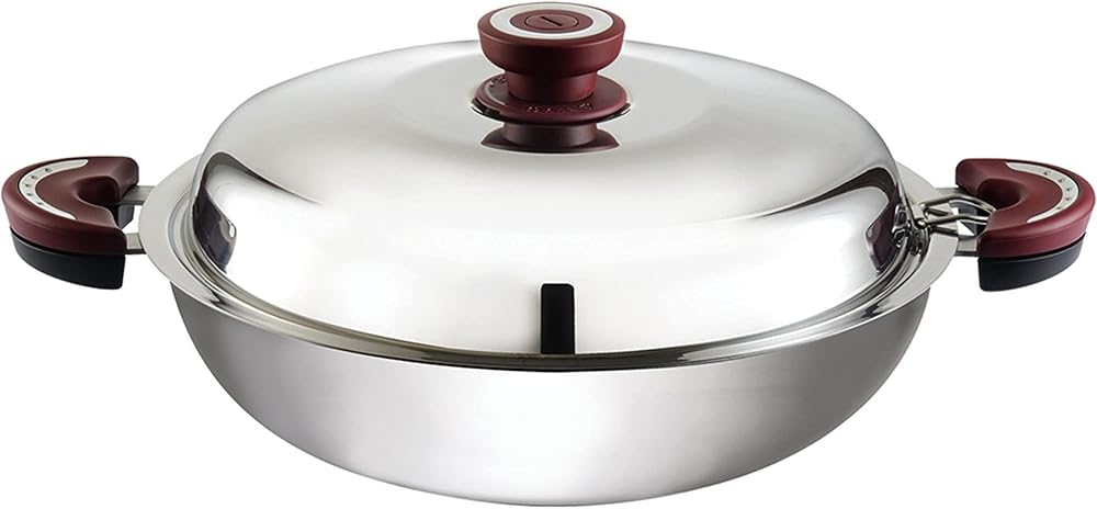BUFFALO Clad Stainless Steel Wok Pan with Lid Flat Bottom 13 inch (32cm) Stir Frying Pan Tri-Ply Nonstick Cookware - Double Handle Cooking Pot for Induction/Electric/Gas Stoves